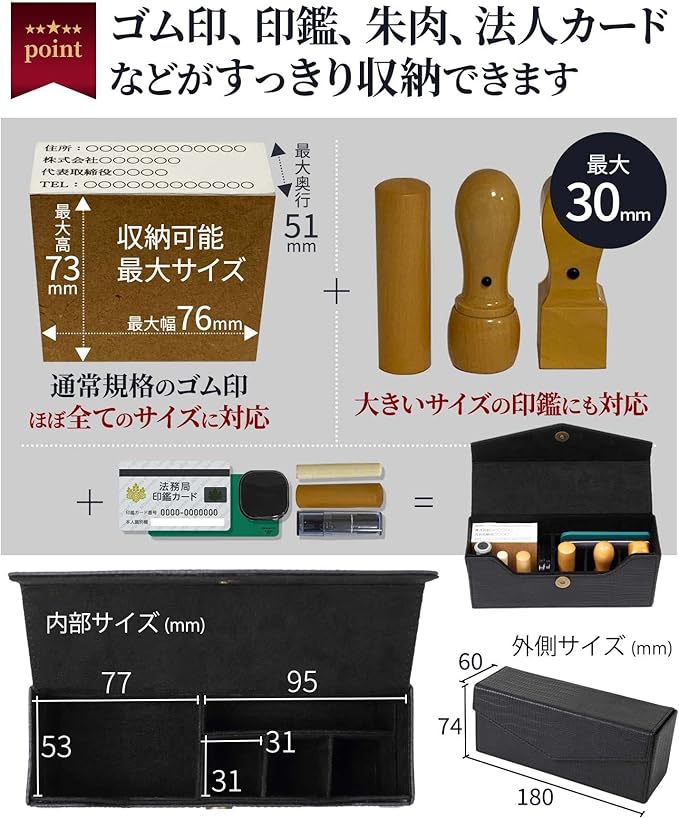 Mashen 印鑑ケース 印箱 法人用 法人 ハンコケース 様々な印鑑に対応(実印 銀行印 角印 認印 社印 ゴム印 住所印 組み合せ印 スタンプ印 社判 など) 個人事業主 フリーランス 会社 印鑑ボックス