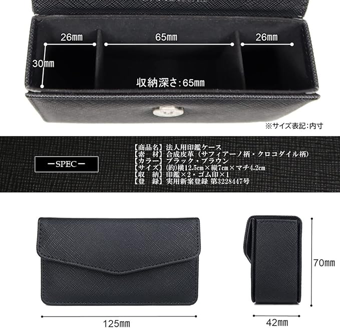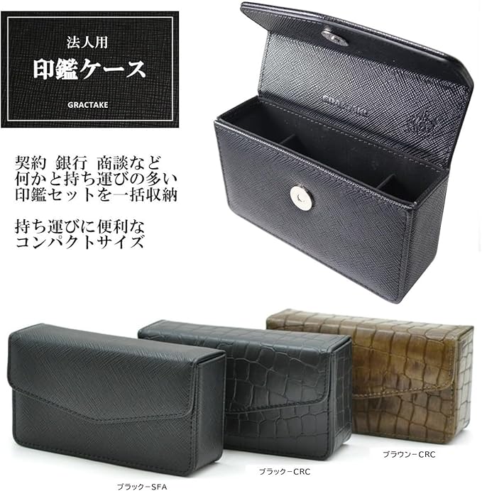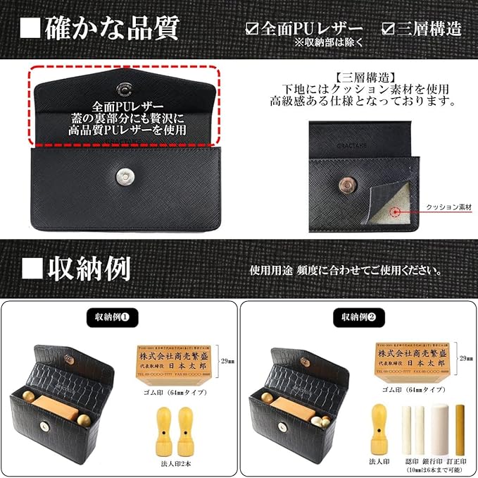 GRACTAKE【商売繁盛】印鑑ケース 法人 2本 ゴム印 (実印 銀行印 角印 認印 横判 など) 持ち運び 携帯用 02 (ブラックーSFA)