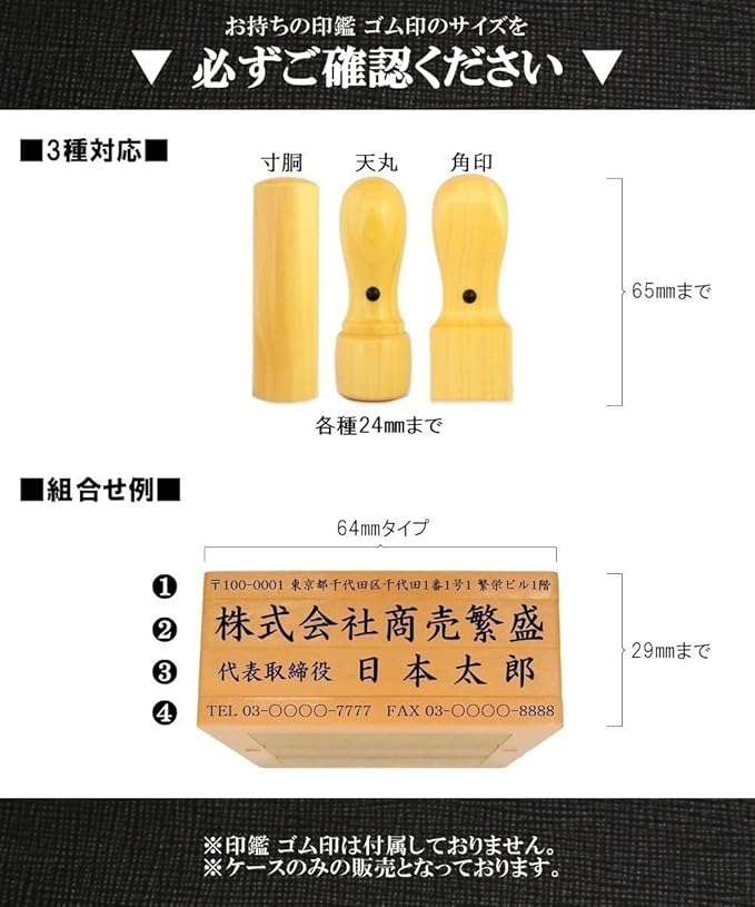 【収納サイズ】[寸胴 天丸 角印] 各形状 18㎜ ~ 24㎜ [ゴム印] 幅64㎜ 厚29㎜