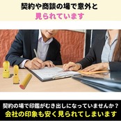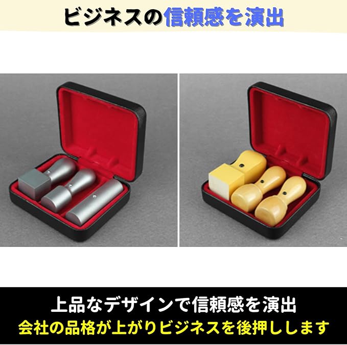 【ビジネスの信頼感を演出】契約や商談の場で、印鑑を取り出す瞬間、印鑑ケースの見た目は意外と見られていることを知ってましたか?ボロボロの袋やむき出し状態で印鑑をカバンから取り出すと、会社の印象も安くみられてしまいます。当社の法人印鑑ケースは、上品なデザインで信頼感を演出。実印・銀行印・角印の3点セットを一括収納できます。会社の品格が上がり、あなたのビジネスを後押しします。