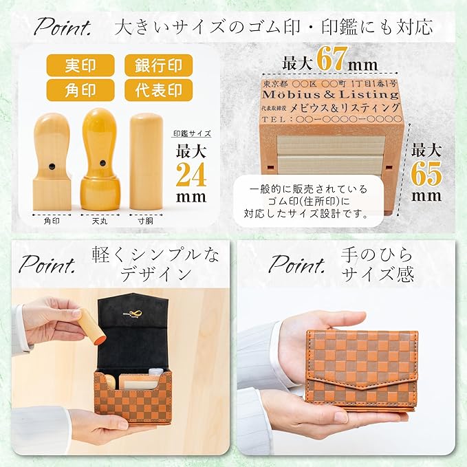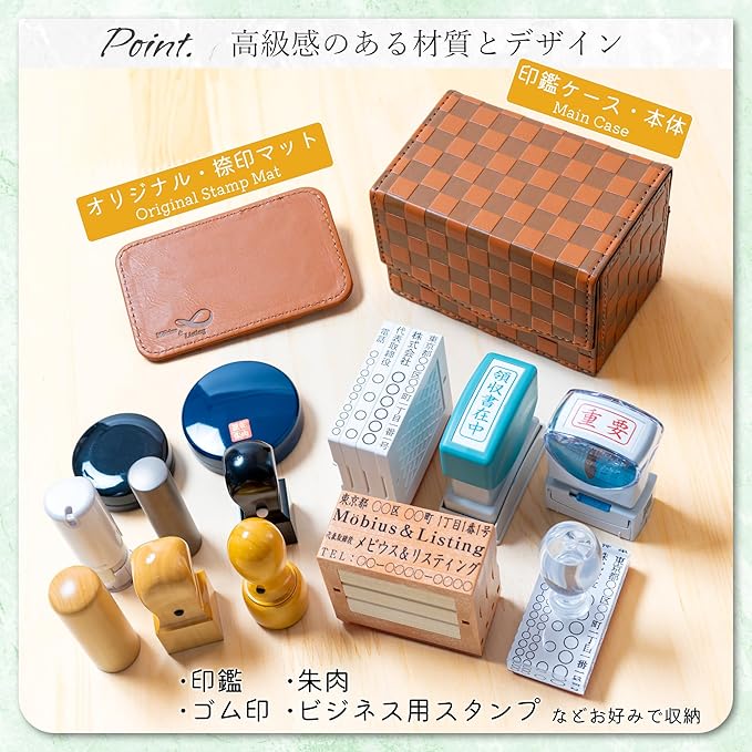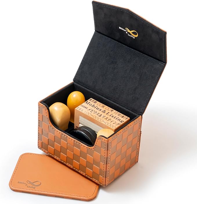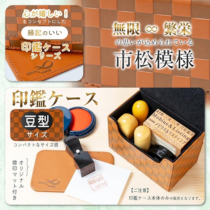 M bius 【市松模様で縁起のいい・法人 印鑑ケース シリーズ・コンパクトサイズ】 ハンコケース ゴム印ケース 印箱 判子ケース 法人用 会社 印鑑 ケース 法人 (実印 銀行印 角印 住所印 社判 社印) 捺印マット付き №10