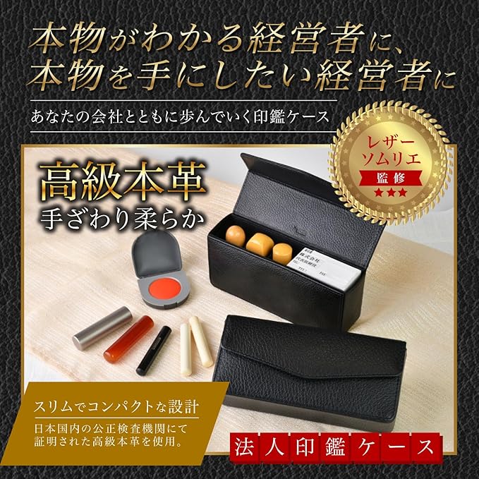 印鑑ケース 法人 牛革 本革 【レザーソムリエ監修】 印鑑3本 (代表印 銀行印 角印) ゴム印 (住所印 社判 会社印) (シボ革)