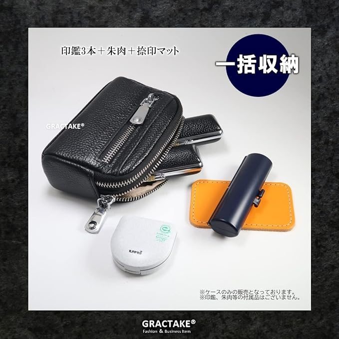 [GRACTAKE] 印鑑入れ 印鑑ポーチ 印鑑ケース 本革 法人 個人 2本 3本 はんこケース 一括収納 P-A (ブラック)