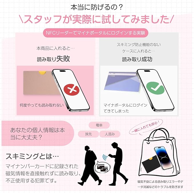 【磁気不良を防止!】パソコンやスマホ等からの磁気干渉を防ぐ便利な通帳ケースです。読み取りエラーやデータの消滅等のトラブルを防ぎます。外部からの電磁波を遮断し、スキミングによる被害を防ぎます。通帳の持ち歩きや保管にも◎
