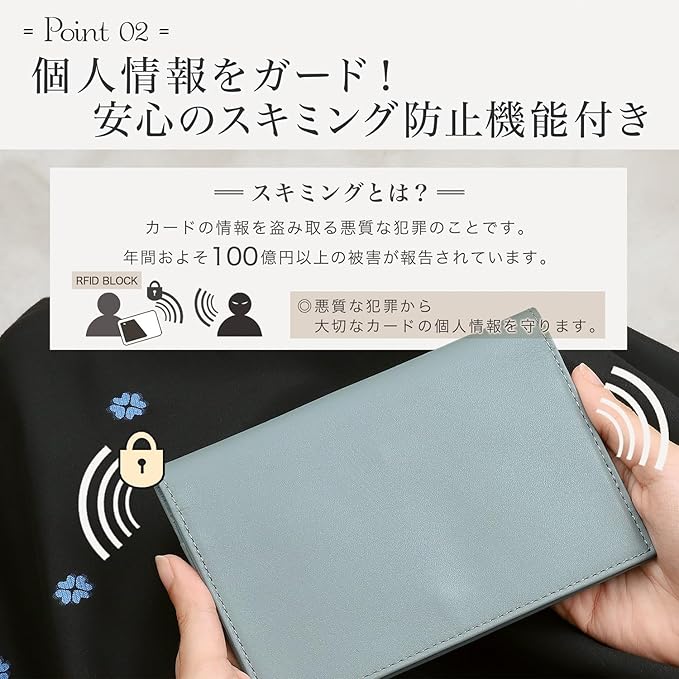 【磁気防止&スキミングブロックで、大切な通帳とカードを守る!】「通帳が反応しない…!」そんな経験はありませんか?ひとつのポーチに通帳やカードをまとめていたら、磁気が飛んでしまい、銀行で再発行…。忙しい中、窓口に行く手間なんてかけたくないですよね。BLUESINCEREの通帳ケースなら、磁気防止機能付きで安心! 通帳やカードをしっかり守り、スキミング被害を防ぐスキミングブロック機能も搭載。大切な資産をしっかりガードしながら、スムーズに管理できます。