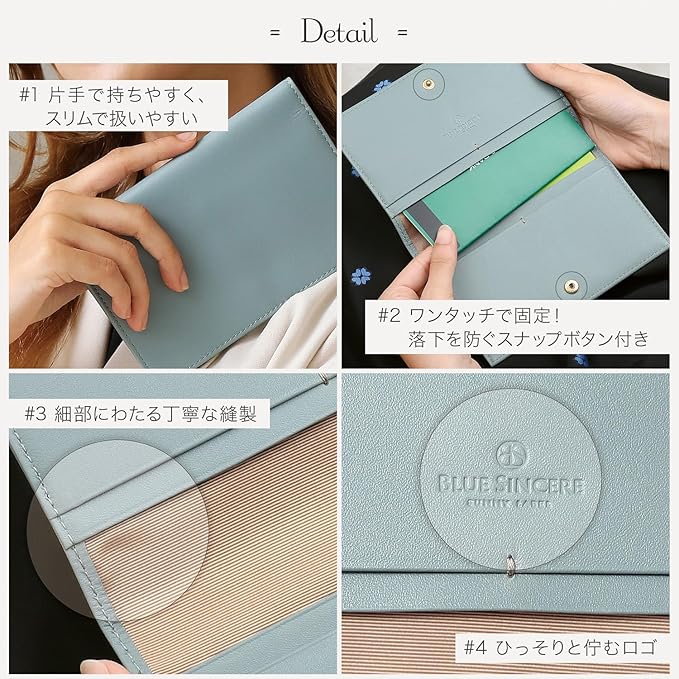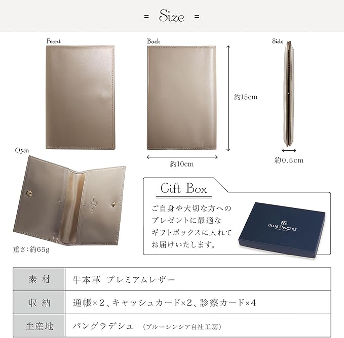 【ブルーシンシアとは?】 「限定商品の発展とともに、バングラデシュの社会問題を解決する」という理念を掲げ、 バッグや財布を自社工場のバングラデシュの職人たちと、その土地の素材の可能性を追求し、 先進国でも通用する高機能なプロダクトを生産しています。 【通帳やカードを、これひとつでスッキリ管理!】銀行口座はいくつ持っていますか?通帳レスが進む中、ハッキングの不安もあり、手元に残しておきたい方も多いはず。でも、通帳やカードが増えると管理が面倒…。そこで誕生したのが、BLUESINCEREのスリム通帳ケース。主婦の皆さんの声をもとに、理想の機能を取り入れつつスリムなデザインを実現しました。通帳4冊とカードが最大8枚を収納可能で、口座管理もラクラク。毎日をもっと快適にする、頼れる一冊。家族の通帳やカードをまるごと入れて、これひとつでスッキリ収納しませんか?
