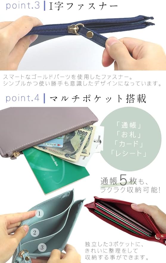 [KOYOKOMA] 通帳ケース マルチケース 3ポケット 薄型 ハンドストラップ付き お財布 長財布 家計管理 シンプル PUレザー スリム コンパクト (パープル)