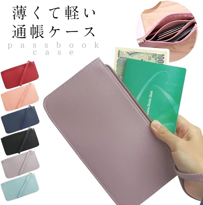 prendre 通帳ケース マルチケース 3ポケット 薄型 ハンドストラップ付き お財布 長財布 家計管理 シンプル PUレザー スリム コンパクト PR-BANK10