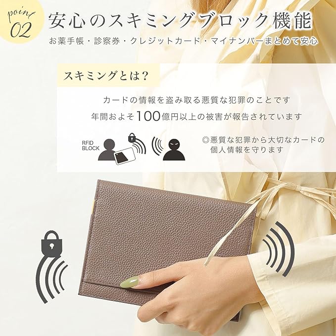【磁気防止&スキミングブロックで、大切な通帳とカードを守る!】「通帳が反応しない…!」そんな経験はありませんか?ひとつのポーチに通帳やカードをまとめていたら、磁気が飛んでしまい、銀行で再発行…。忙しい中、窓口に行く手間なんてかけたくないですよね。BLUESINCEREの通帳ケースなら、磁気防止機能付きで安心! 通帳やカードをしっかり守り、スキミング被害を防ぐスキミングブロック機能も搭載。大切な資産をしっかりガードしながら、スムーズに管理できます。