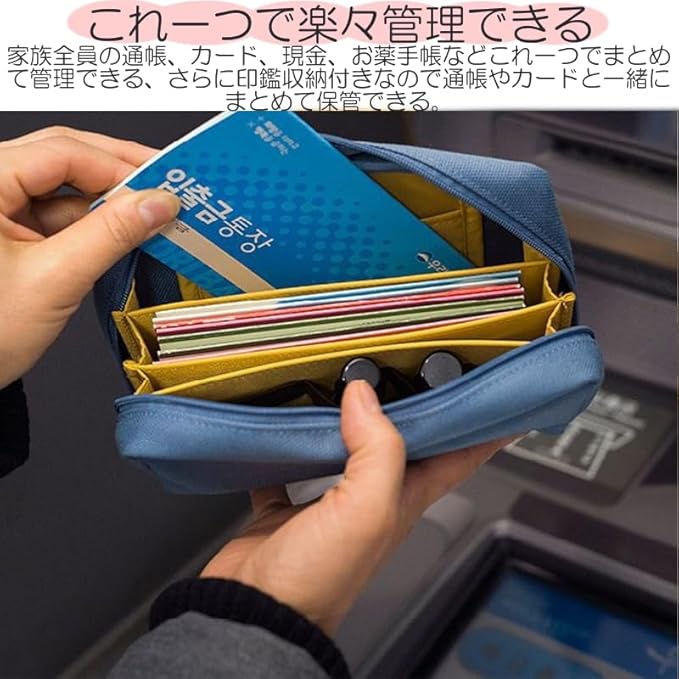 【大容量】 HYUNGJ 韓国 通帳ケース 通帳入れ 通帳 ポーチ 印鑑 ケース 大容量 小物入れ 収納 大きめ かわいい おしゃれ 整理 家計簿 お薬手帳 保険証 診察券 電卓 レシート レディース メンズ バング 化粧 コスメ 整理 収納 シンプル 女性 女