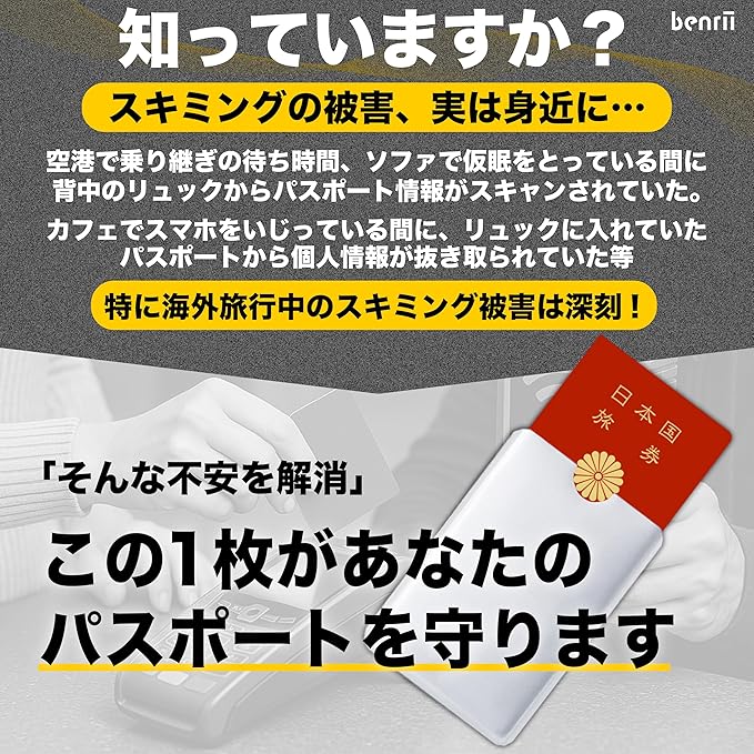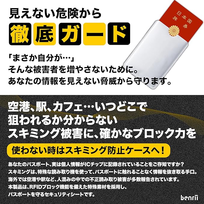 [benrii] 2枚セット スキミング防止 パスポートケース RFIDブロック 海外旅行用 磁気遮断 軽量 薄型 セキュリティ対策