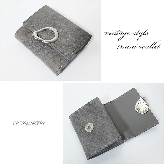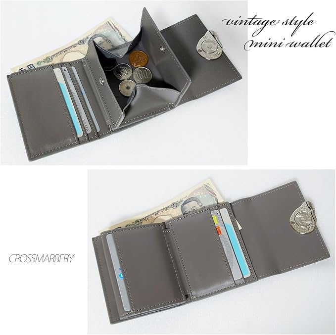 [クロスマーベリー] 小さい財布 レディース 軽量 可愛い 3つ折り ミニ コンパクト 使いやすい おしゃれ ボックス型 大人 金具 ヴィンテージ 小銭入れ グレー R111 Gray