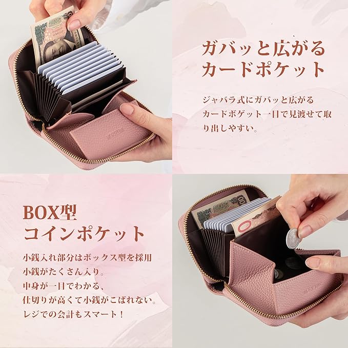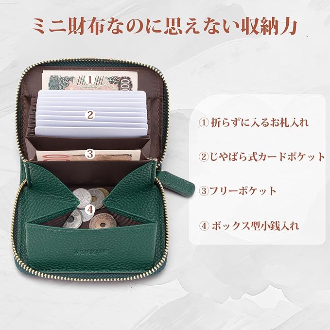 【手のひらサイズでミニバッグにぴったり小さい財布】コンパクトなのにしっかり収納。小さめバッグ派の女性に最適。財布のサイズ:10.5 8.5 2.5cm 重さ:86g
