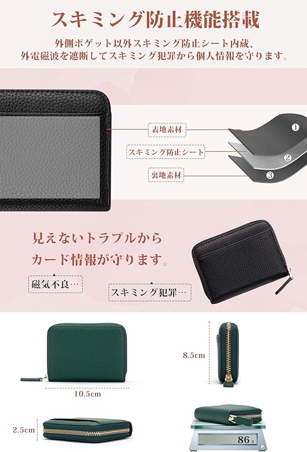 【スキミング防止機能付き】個人情報を守る安心設計で、キャッシュレス時代にぴったりのセキュリティ機能付き。