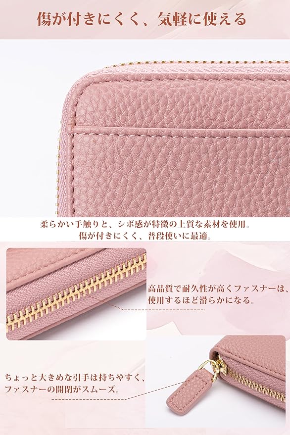 【上質なシボ加工レザー 洗練デザイン】キズが目立ちにくいシボレザー使用し、手になじみやすく、上品で長く愛用できます。