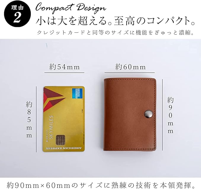【 スマートウォレット 】コンパクトながら、たくさん入る。サブの財布としてはもちろん、メインとしてもキャッシュレスなライフスタイルなら十分な機能性です。ミニ財布にありがちな、お札を折りたたんで収納をしなくていいので、手間もかかりません。縫製、塗り処理など、厳重な品質管理のもと、最高な状態の仕上げでのご提供。ワンランク上のクオリティ。