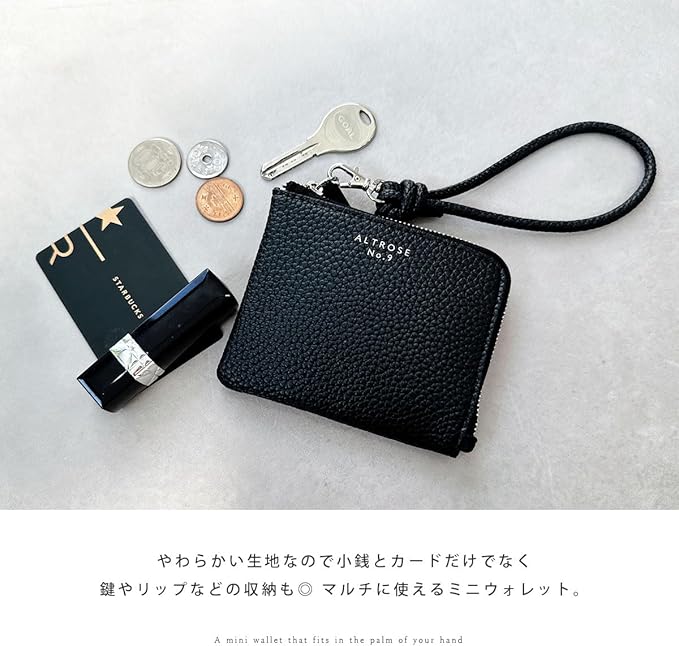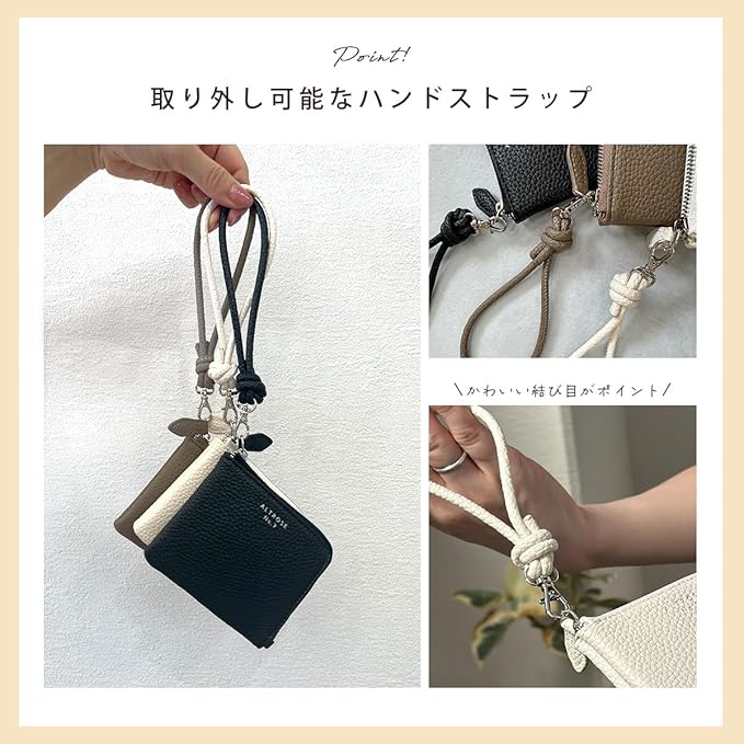 【機能性とデザイン性】・シボ感が美しい柔らかい素材。鍵やリップの収納としても◎・L字ファスナーできれいめなフォルム。手にもしっかり馴染んでくれます。・取り外し可能で便利なかわいいハンドストラップ付