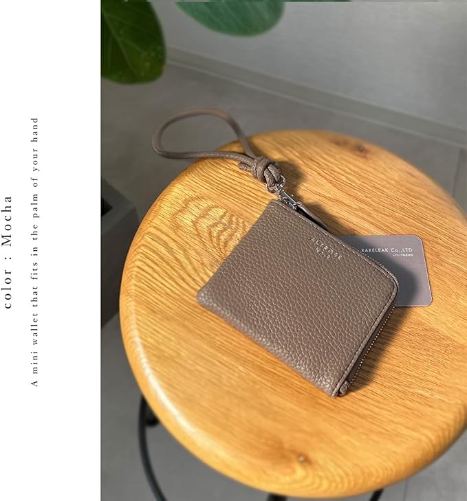 財布 薄型 コンパクト l字ファスナー ミニ財布 大容量 軽量 ハンドストラップ 薄い 軽い 取り出しやすい レディース (モカ)
