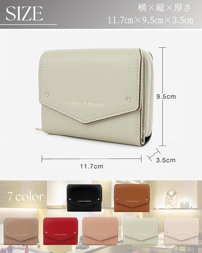 【上品な三つ折り財布】手のひらサイズで、高見えするモダンでシンプルなデザインが魅力的。小さ過ぎないサイズ感は、使いやすくて丁度いい大きさです。