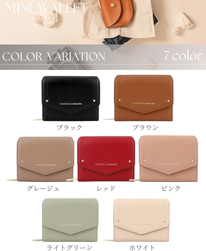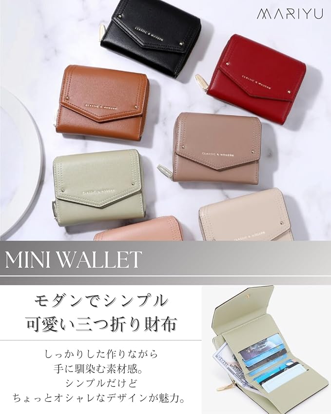 [MARIYU] 財布 レディース 三つ折り財布 ミニ財布 折りたたみ 小銭入れ シンプル ウォレット (グレージュ)