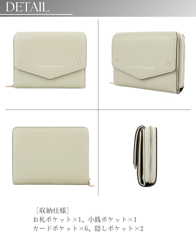 【仕様】お札ポケット 1・小銭ポケット(ファスナー) 1・カードポケット 6・隠しポケット 2 【サイズ】横11.7cm 高さ9.5cm 厚さ3.5cm・重さ:140g