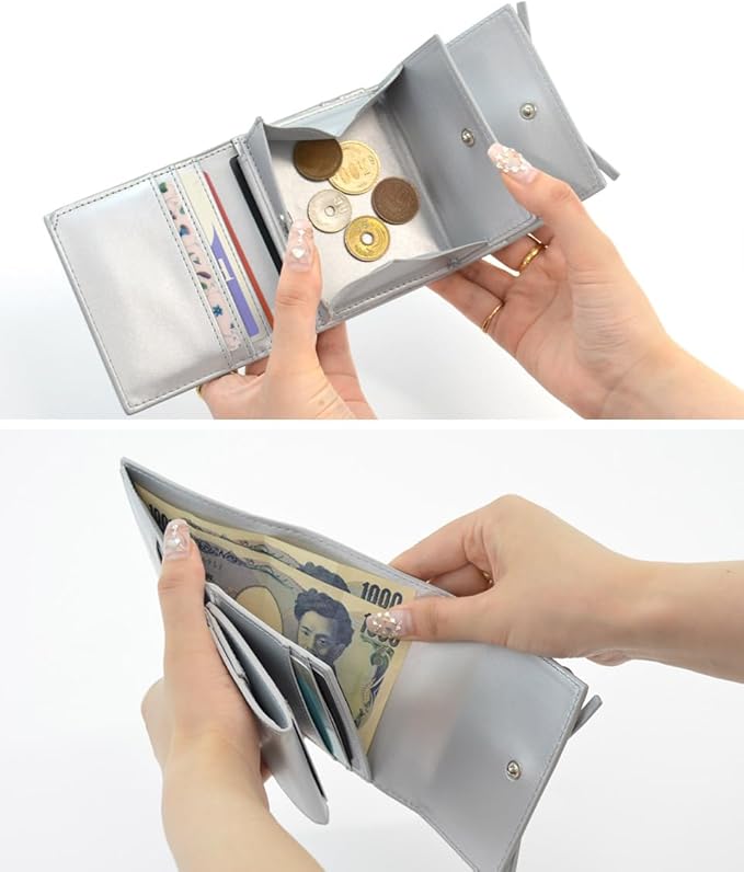 [アルトローズ] シルバー 三つ折り財布 レディース 3つ折り財布 コンパクト財布 ミニ財布 小さい財布 女性 ミニ 人気 限定商品 可愛い 薄い 薄型 コンパクト 折りたたみ 財布 さいふ 使いやすい 大容量 小銭入れあり おしゃれ かぶせ かわいい リボン りぼん 332995-20