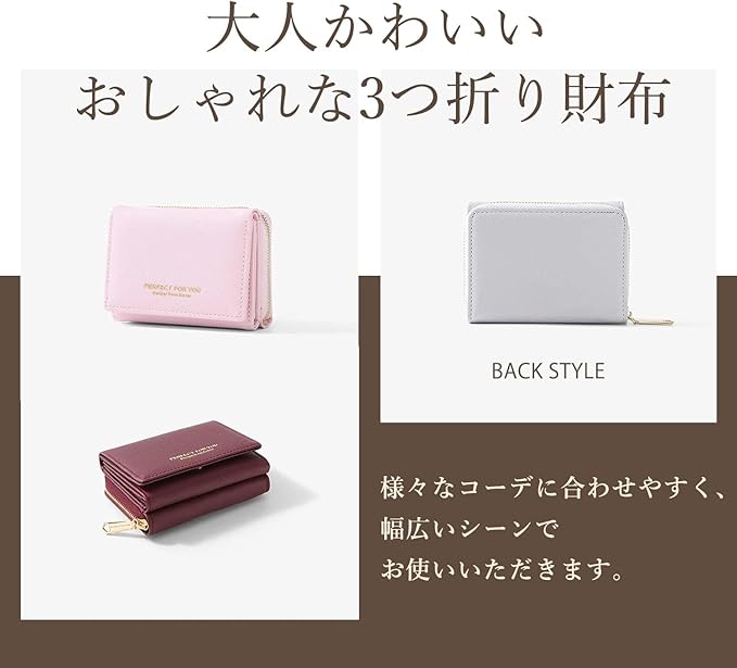 [Smomo] 三つ折り財布 レディース PU ミニ財布 コンパクト財布 ボタン型 小銭入れ カード入れ 可愛い 通勤 通学 一粒万倍日 バレンタイン ギフト