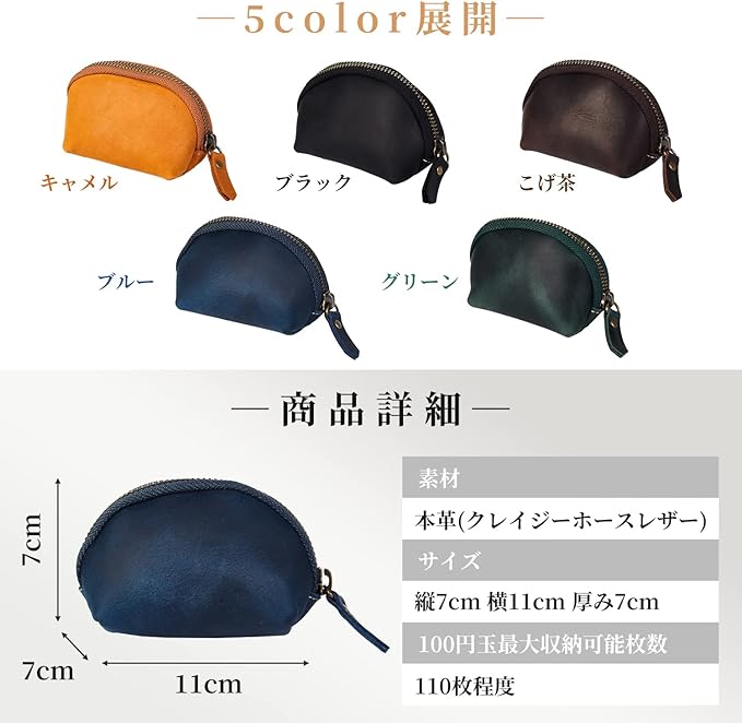 【日本企画 厳選工場】日本国内で企画・設計を行い、技術力の高い中国のISO認証提携工場にて丁寧に仕立てました。 【サイズ】縦7cm 横11cm 厚み7cm【お知らせ】本製品には高品質な本革クレイジーホースレザーを使用しています。初めは硬く感じられるかもしれませんが、使うほどに手に馴染み、柔らかくなります。長く愛用いただける素材ですので、ぜひお楽しみください。