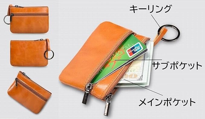 鍵の収納やキーホルダーの取り付けに便利なキーリング。耐久性がありスムーズな動きのメタルファスナーを使用。 コンパクトながらもコイン以外にカードや折りたたんだお札も収納できます。