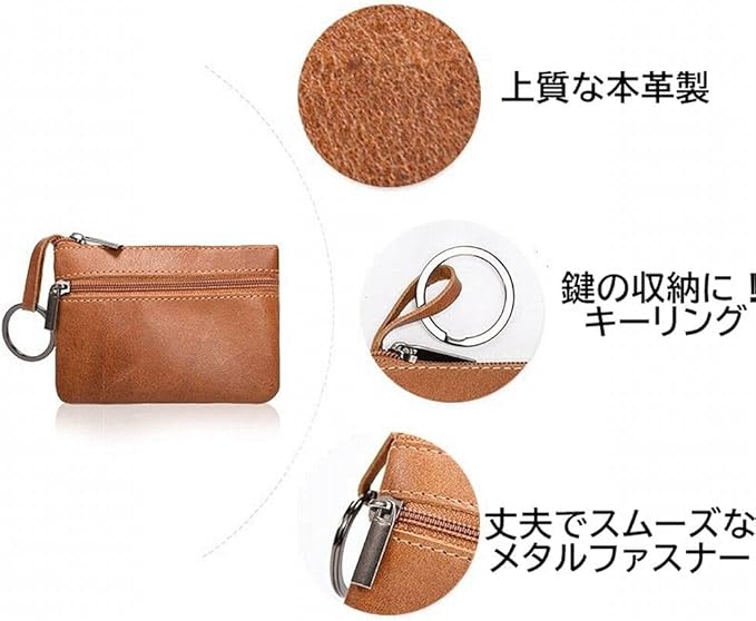 Beatus コインケース 小銭入れ レザー 本革 ミニ財布 コンパクト メンズ レディース (ブラウン)