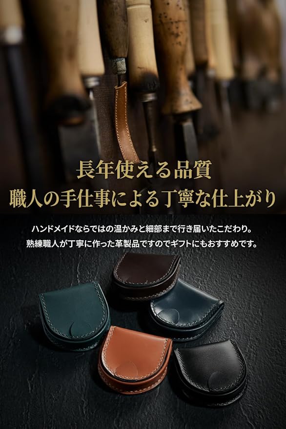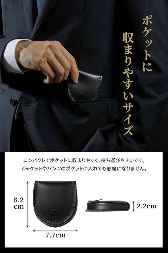【ポケットに収まりやすいサイズ】コンパクトでスリムでポケットに収まりやすく、軽量で持ち運びやすいです。ジャケットやパンツのポケットに入れても邪魔になりません。【長年使える品質】職人の手仕事による丁寧な仕上がりが魅力。ハンドメイドならではの温かみやこだわりが細部まで行き届いています。熟練職人が丁寧に作った高級感のある革製品ですので、誕生日や父の日ギフトなどにもおすすめです。