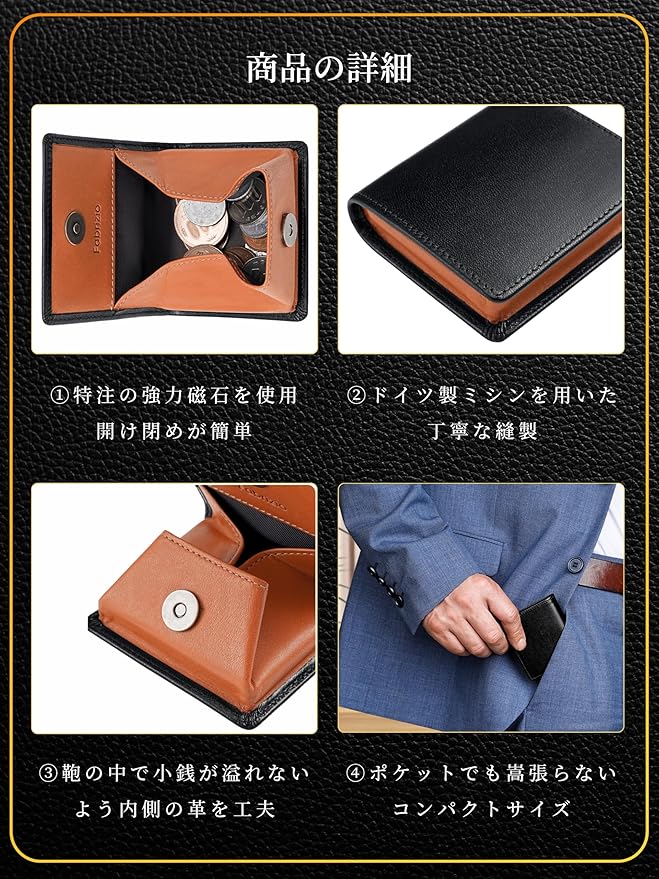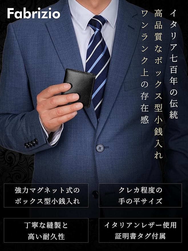 [ファブリツィオ] 小銭入れ コインケース メンズ レディース 本革 小さい 限定商品 ボックス型 マグネット式 高級 使いやすい イタリアン レザー 人気 小銭ケース(ブラック)