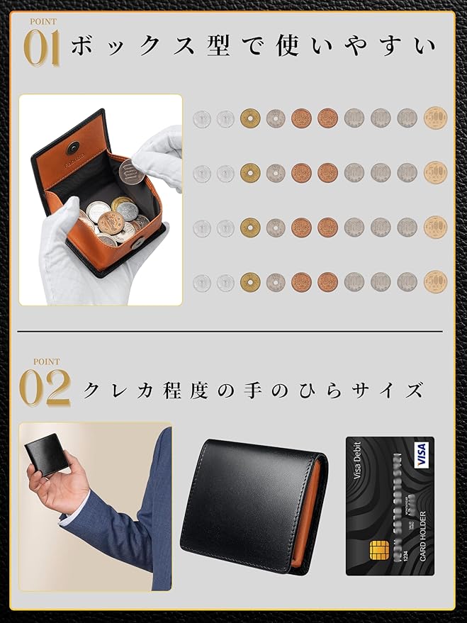 【 タイプ 】小銭ケース 【 素材 】タンニンなめし 本革 【 サイズ 】横幅7.2cm 縦幅7.8cm 厚み2cm 重さ30g 【 仕様 】ボックス型 小銭入れ x1