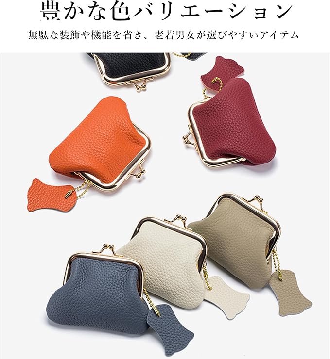 最高品質の牛革素材を使用して製作したがま口型のコインケースです。オーソドックスな形のがま口財布にオイルワックススキンの高級感のある質感とシルバーの口金でエレガントなデザインになっています。小さいフォルムに十分な容量を備えており、小銭はもちろんアクセサリーやコスメ、イヤホン、薬など様々な用途にお使いいただけます。チェーン付いているので、キーホルダーやバッグなどに付けたりと使い道が広がります。本革の高級感とシンプルなデザインで、大人らしいアイテムにカジュアルファッション、フォーマルシーンにも自然となじむ万能アイテムです。 6つのカラーから選ぶことができ、日常のおしゃれなコーディネートや子供のお小遣い入れとしても素敵な選択肢です。コンパクトで軽量で見た目以上の収納力を持ち、約40枚の硬貨を簡単に収納できます。日常のお出かけ時に便利に使えます。