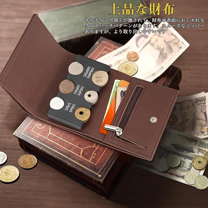 財布 三つ折り 小銭入れ コインホルダー メンズ 小さい コインケース コンパクト 無地 軽量 お札も入る 整理 硬貨収納 持ち運び 父の日ギフト コンパクト PU ブラウン