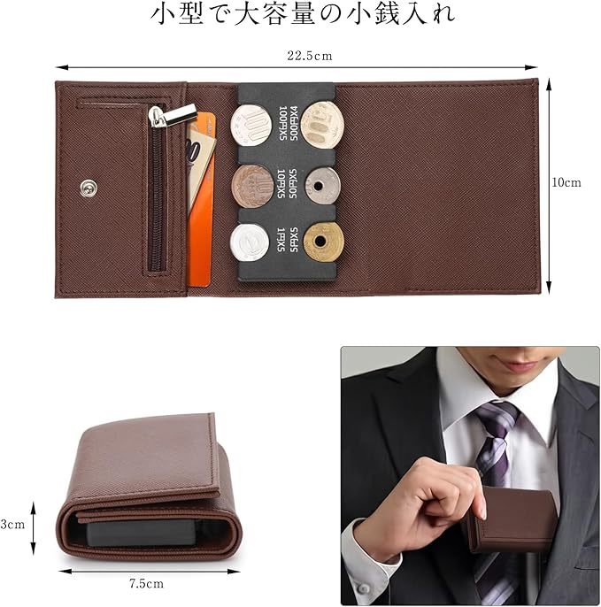 【小型で大容量の小銭入れ】財布は小さいですが、持ち運びに便利です。三つ折りの財布と6個のコインケースを利用できるの小銭入れはおすすめします