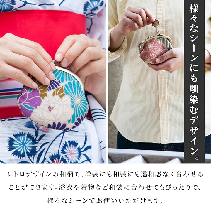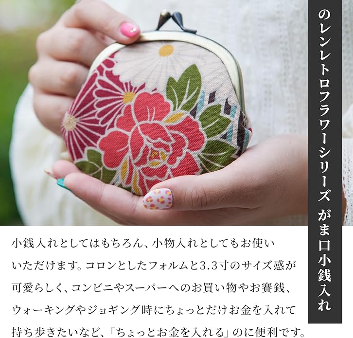[のレン] レディース がま口 財布 / [ 親子がま口 14 12 2.5cm 二重がま口 外ポケット付き ] / [ がま口小銭入れ ミニ 丸型3.3寸 角形11.5 7.5cm ] / 日本製 がま口財布 コインケース カードケース 和柄 花柄