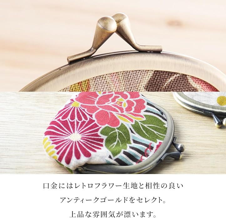 のレン店人気のレトロフラワー生地を使った親子がま口です。