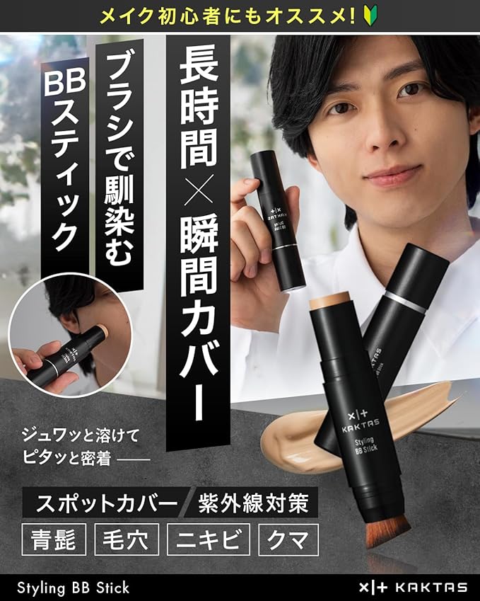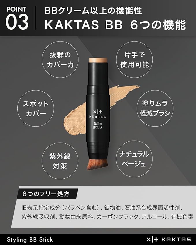 KAKTAS(カクタス) BBスティック ブラシ ナチュラルベージュ 青髭 毛穴 ニキビ クマ シミ UV テカリ メンズ BBクリーム コンシーラー ファンデーション 紫外線散乱剤配合 皮脂吸着パウダー配合 ノンケミカル BB