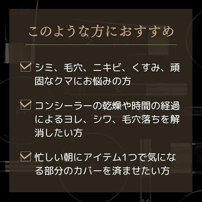 軽やかな肌溶けで乾燥崩れしないプロ級ハイカバーコンシーラー