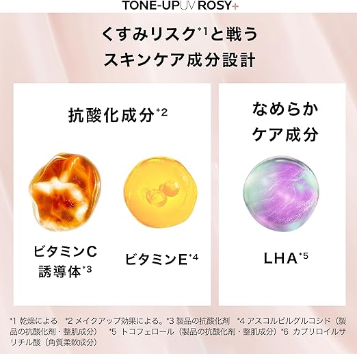 商品特長 保湿・整肌成分を贅沢に配合し*1、みずみずしいテクスチャーの化粧下地 保湿処方で、乾燥しがちな肌をうるおいで満たします。ビタミンC誘導体*2やビタミンC、ビタミンE*3などの成分がキメを整え、くすみ*4や色ムラを自然にカバーして*5、素肌感のあるトーンアップ 日焼け止め 下地として活躍します。ロングUVAや大気中微粒子*6から肌を守り、石鹸オフ可能な設計でデイリーに使いやすいのも特長です。*1 約64%配合。保湿・整肌成分・基材。*2 アスコルビルグルコシド(製品の抗酸化剤・整肌成分)。*3 トコフェロール(製品の抗酸化剤・整肌成分)。*4 乾燥による。*5 メイクアップ効果による。*6 物理的な肌の付着からの防御。すべての大気中物質をさすわけではありません。保湿・整肌成分を贅沢に配合し*1、みずみずしいテクスチャーの… 表示を増やす