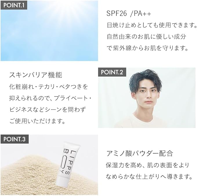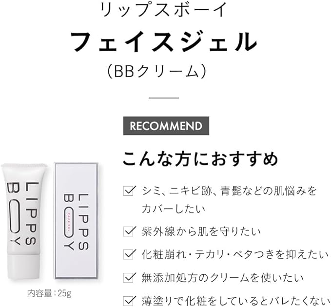 リップスボーイ フェイスジェル25g(自然な肌色) BBクリーム SPF26 PA++ メンズコスメ ニキビ跡カバー 日焼け止め きめ細やかな肌 青ひげカバー LIPPS BOY
