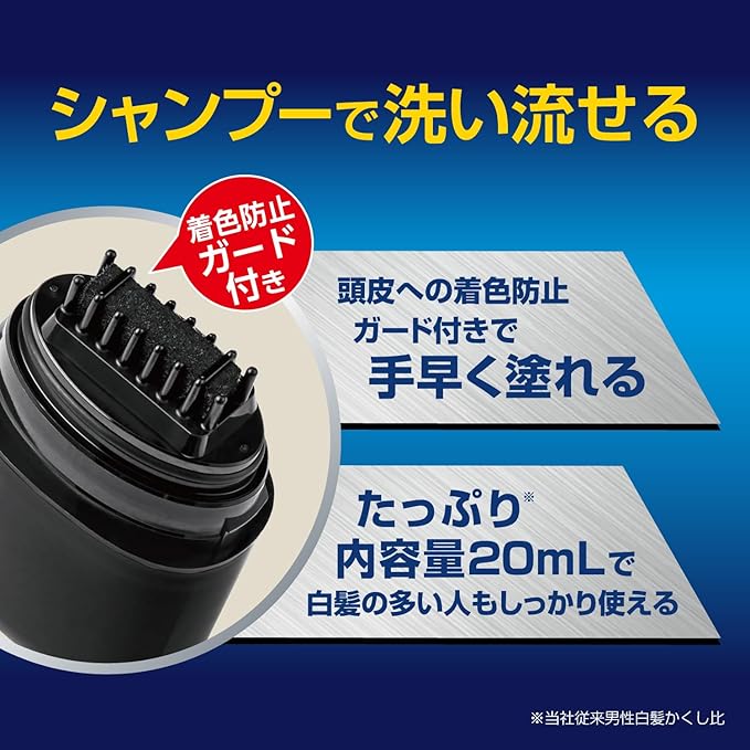 着色防止ガード付きで頭皮に色がつきにくく、簡単に塗れます。乾きが早く、自然な仕上がりです。