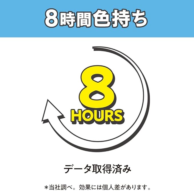 8時間色持ちデータ取得済み。(当社調べ。効果には個人差があります。)
