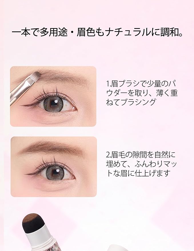 1. 【微細粉末で仕上げる】 肌触りも軽やかな微細パウダー。飛び散らず、ダマにならず、髪の毛をしっかりコーティングしながら毛流れを自然に整えます。髪や地肌への負担を最小限に抑え、べたつきやゴワつきがないため、使い心地が快適。