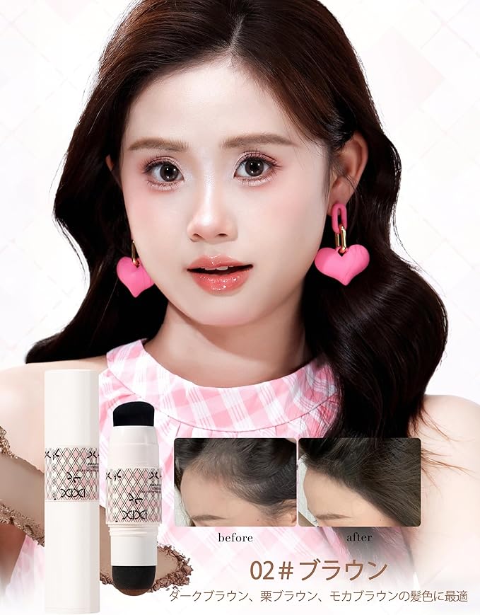 5. 【マルチカラー&多機能】 複数のカラーをご用意。お客様の髪色にマッチする色をお選びいただけます。さらに、顔周りのシェーディングや鼻筋ハイライト、眉の形整えなど、小顔効果アップのためのコントゥアリングメイクとしてもお使いいただけます。一本で髪も顔周りも美しく整う、優れたマルチユースアイテムです。