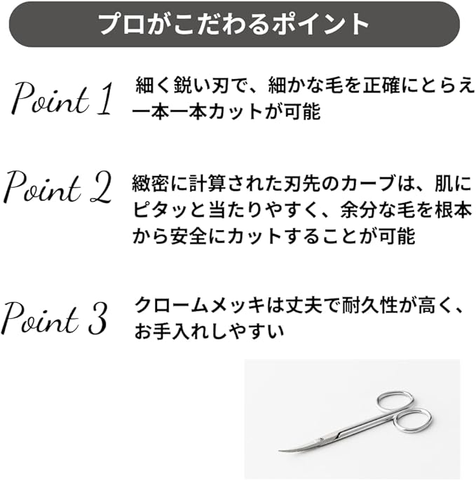 ✅細く鋭い刃で、細かな毛を正確にとらえ一本一本カットが可能なMADE IN JAPANの眉バサミです。