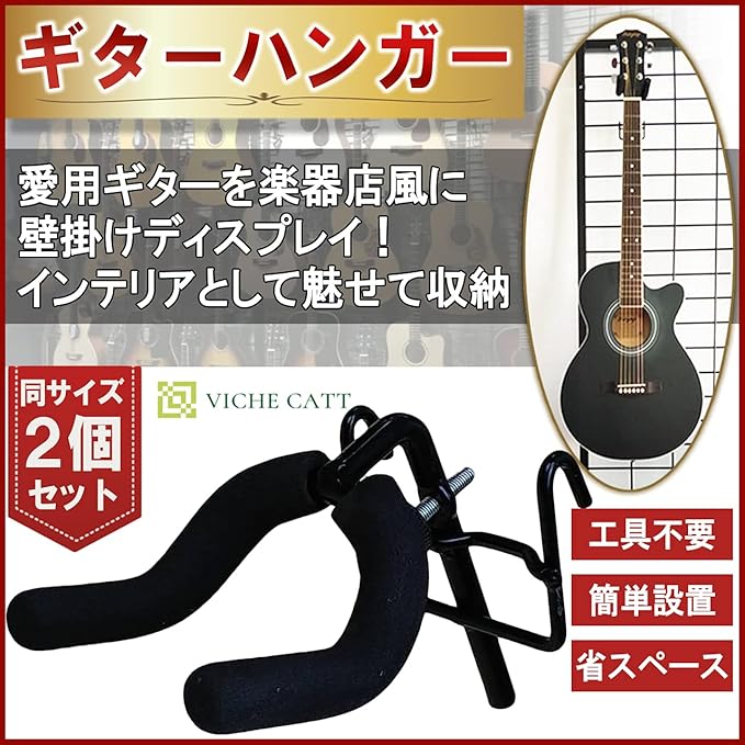 VICHE CATT ギターハンガー ネット用 ギタースタンド ギター フック 壁掛け ホルダー 2個セット ディスプレイ (S(全長13㎝))