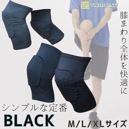 VICHE CATT 膝パッド ひざパッド 2枚セット 作業用 膝サポーター 膝当て 膝 ひざ スポーツ ニーパッド 両膝セット (M, ブラック)