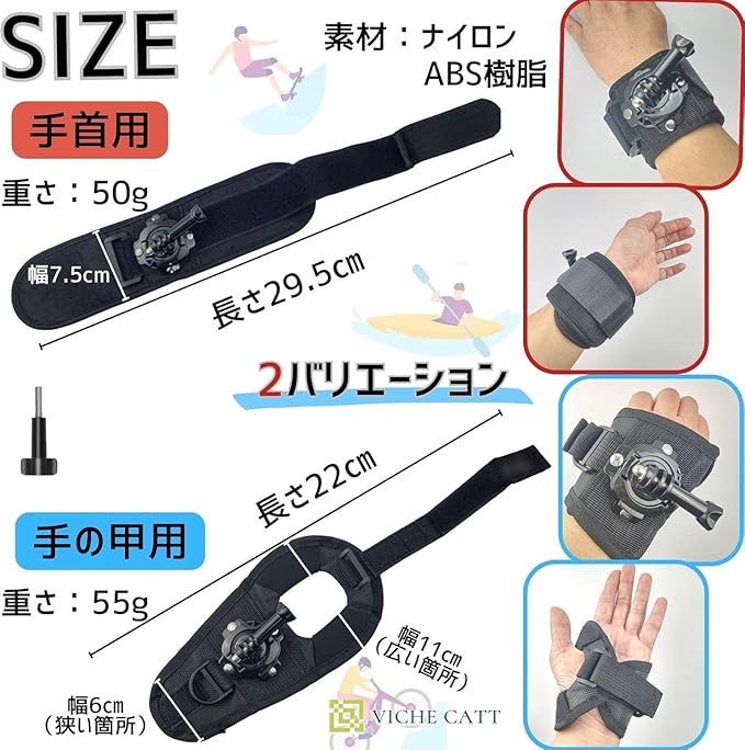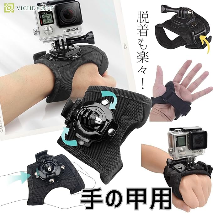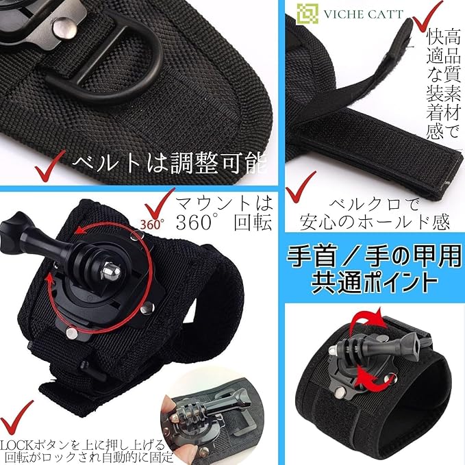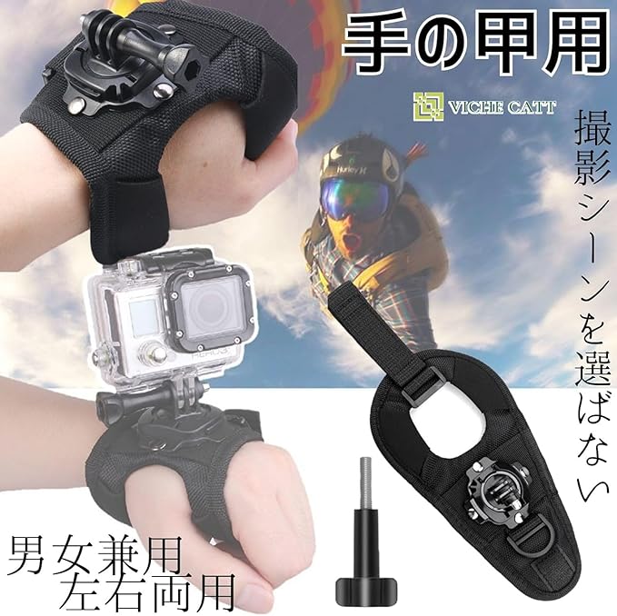 VICHE CATT 360 回転 リストストラップ マウント ゴープロ対応 インスタ360用 GoPro対応 Hero12/11/10/9/8/7/6/5対応可能 (手の甲用)